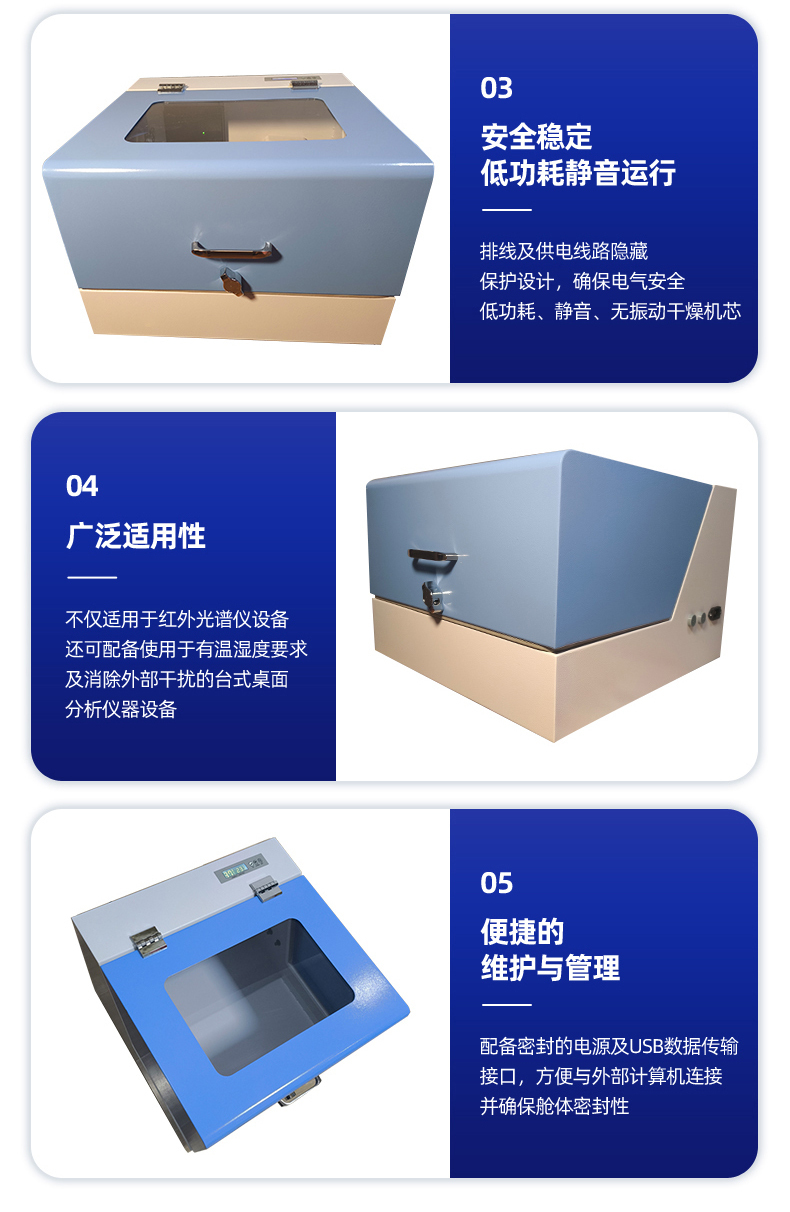 DRY-04智能電子防潮箱電子防潮箱,專為賽默飛 IS50 紅外光譜儀量身定制,以領先的防潮技術,為精密儀器筑牢安全防線。搭載高性能電子除濕機芯,結合微電腦濕度控制系統(tǒng),具備節(jié)能低耗、靜謐無噪、濕度直觀顯示等顯著優(yōu)勢。作為專為傅立葉變換紅外光譜儀量身定制的配套附件,其精密的防塵防潮設計,可有效提升設備核心部件的使用壽命,為儀器的穩(wěn)定運行與精準檢測提供可靠保障。